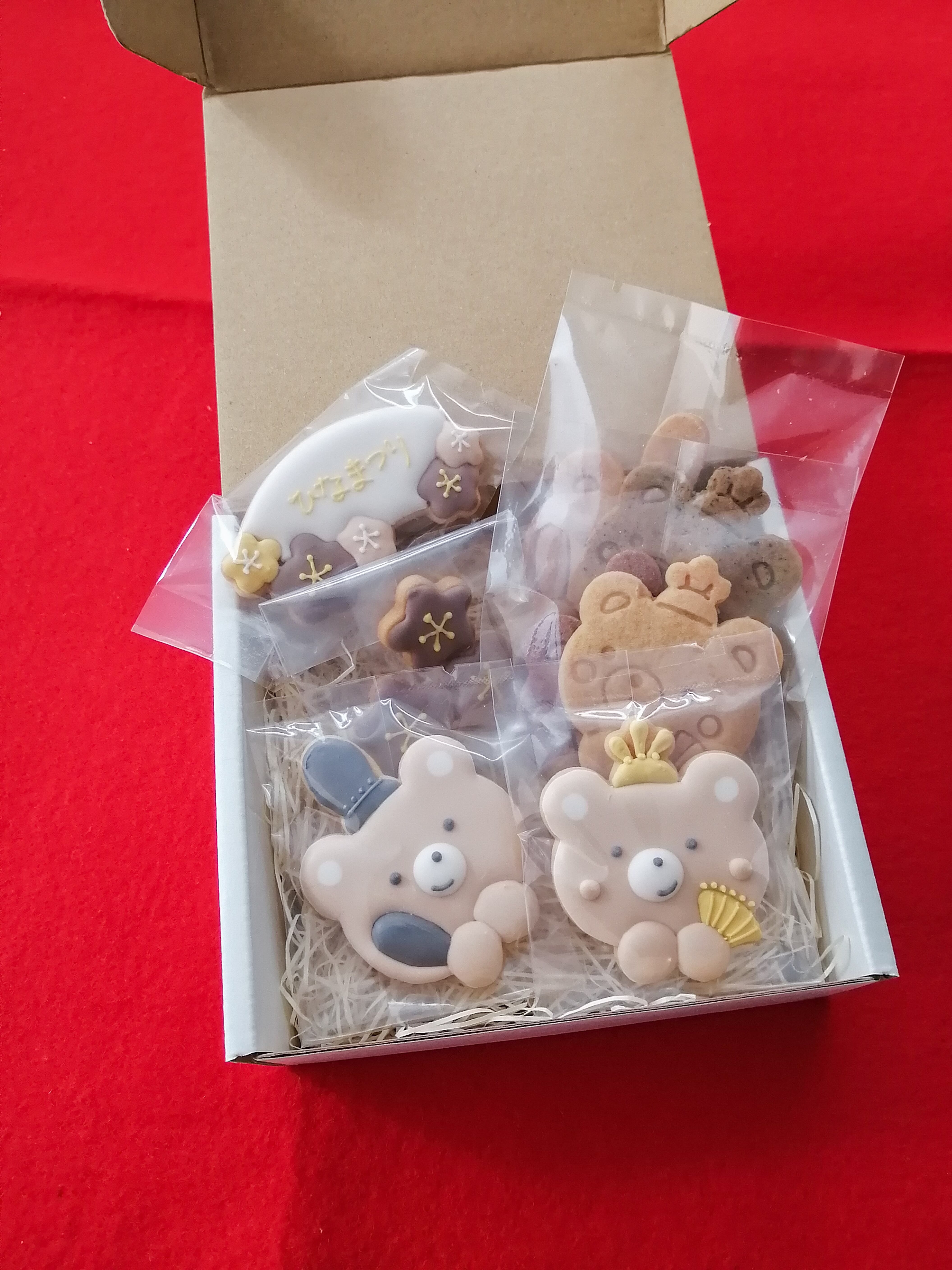 ひなまつりデザインのアイシングクッキー6枚と米粉クッキー4枚のボックスセット